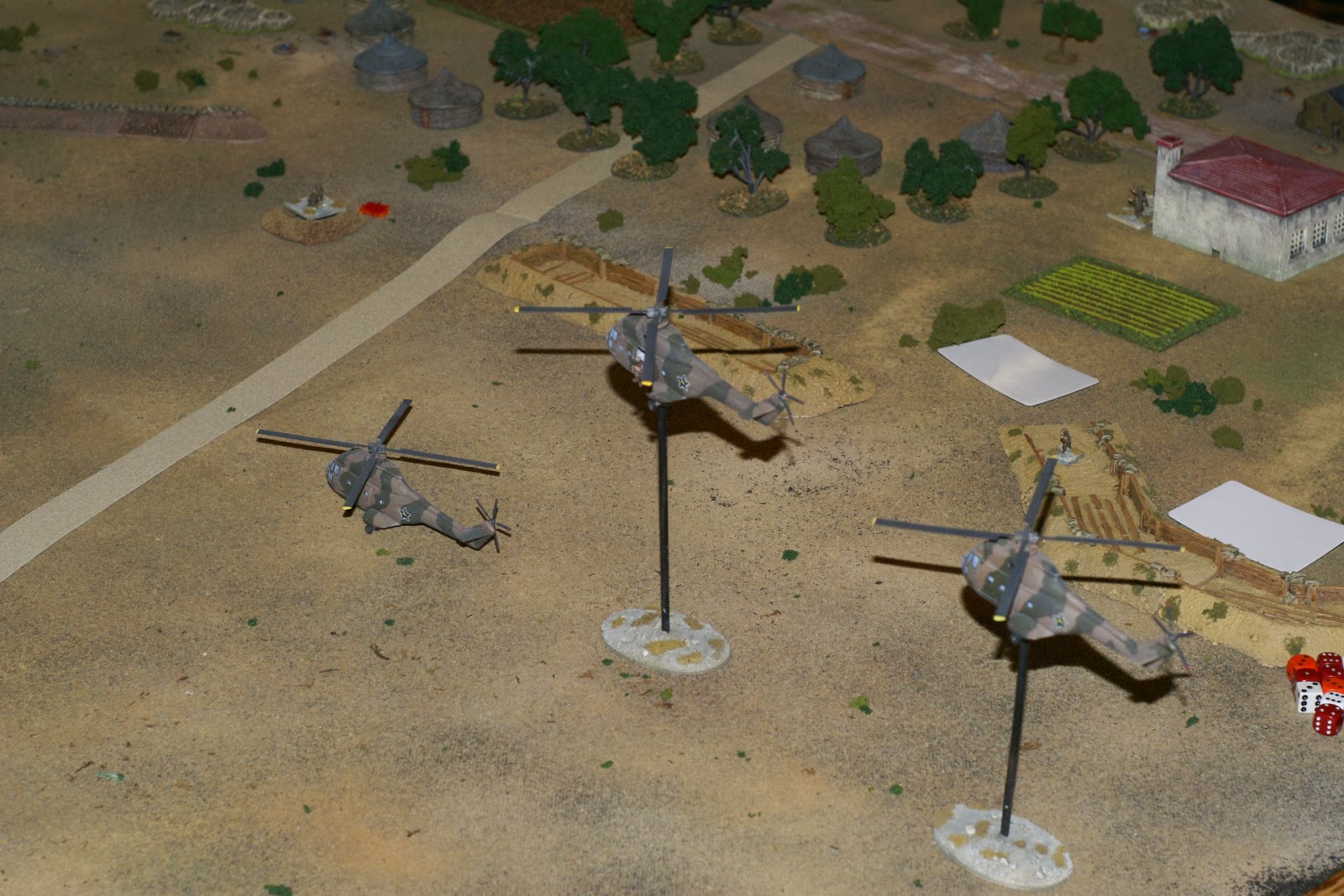 Meanwhile on the other end of the board, some Puma transport helicopters show up to pick up the troopies.